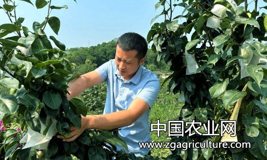 图片说明:陈凯正在梨园查看梨子