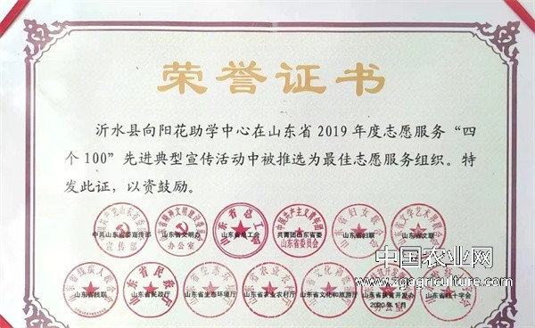 行得春风落秋雨,无私奉献收获多。沂水县向阳花助学中心广大志愿者也先后获得“慈善之星”、"爱心标兵”、"最美志愿者"、"沂蒙形象大使"、"助学工作先进个人"等众多荣誉称号。沂水县向阳花助学中心被中共临沂市委宣传部、临沂市文明办、临沂市民政局、共青团临沂市委、临沂市志愿者协会评为临沂市“最佳志愿服务组织”、被中共山东省委宣传部、省文明办、共青团山东省委等十三个部门评为“山东省最佳志愿服务组织”。2020年,被临沂市希望工程办公室评为临沂市“希望工程30年捐资助学突出贡献集体”。2021年被临沂市慈善总会评为临沂市“慈善助学先进单位”,“用爱托起明天的太阳—贫困家庭学生助学项目”被山东省民政厅评为“全省社会力量参与社会救助优秀项目?!?nbsp;