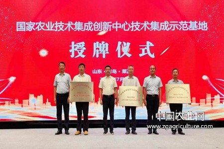 在会上,对山东省青岛市农业技术推广中心、威海市农业农村事务服务中心、平原县农业农村局分别创建的黄淮北部粮油高效节水增产技术集成示范基地、渤海湾产区苹果轻简高效生产技术集成示范基地、黄淮海小麦玉米“吨半粮”技术集成示范基地,分别颁授了“国家农业技术集成创新中心示范基地”铜牌。截至目前,这是全国已评定授牌的仅有的4个国家级基地中的3个。