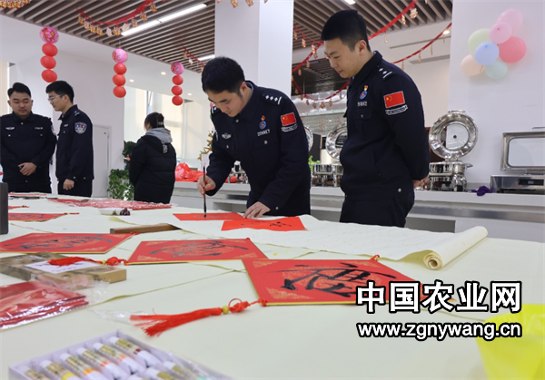 中国农业网:(记者 冯善鹏 陈莹)春节来临之际,1月22日,临沂出入境边防检查站联合临沂市文化馆(临沂画院、临沂市美术馆)组织开展了“翰墨传福 喜迎新春”书画名家进警营活动,为广大民辅警送来美好的新春祝福。
