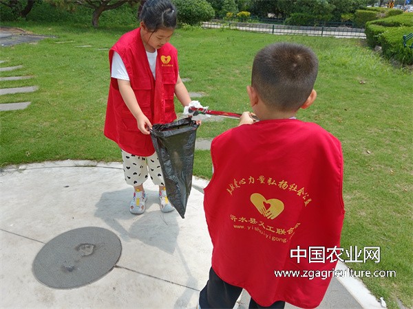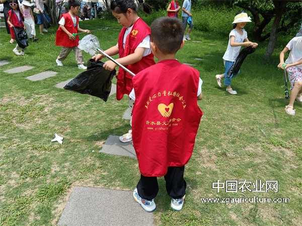 中国农业网沂水讯:(特约记者:韩爱国  薛莲)7月10号沂水县义工联合会小志愿者们在炎炎夏日里,他们手持垃圾袋,手拿架子在公园的各个角落忙碌着。他们,就是我们可爱的小志愿者们,在暑假期间由我们沂水县义工联合会组织了一场别开生面的环?;疃焦凹窭??;疃记耙仕匾骞ち匣岣被岢ず孕∫骞そ樯芑疃⒁馐孪睿约盎疃庖?。